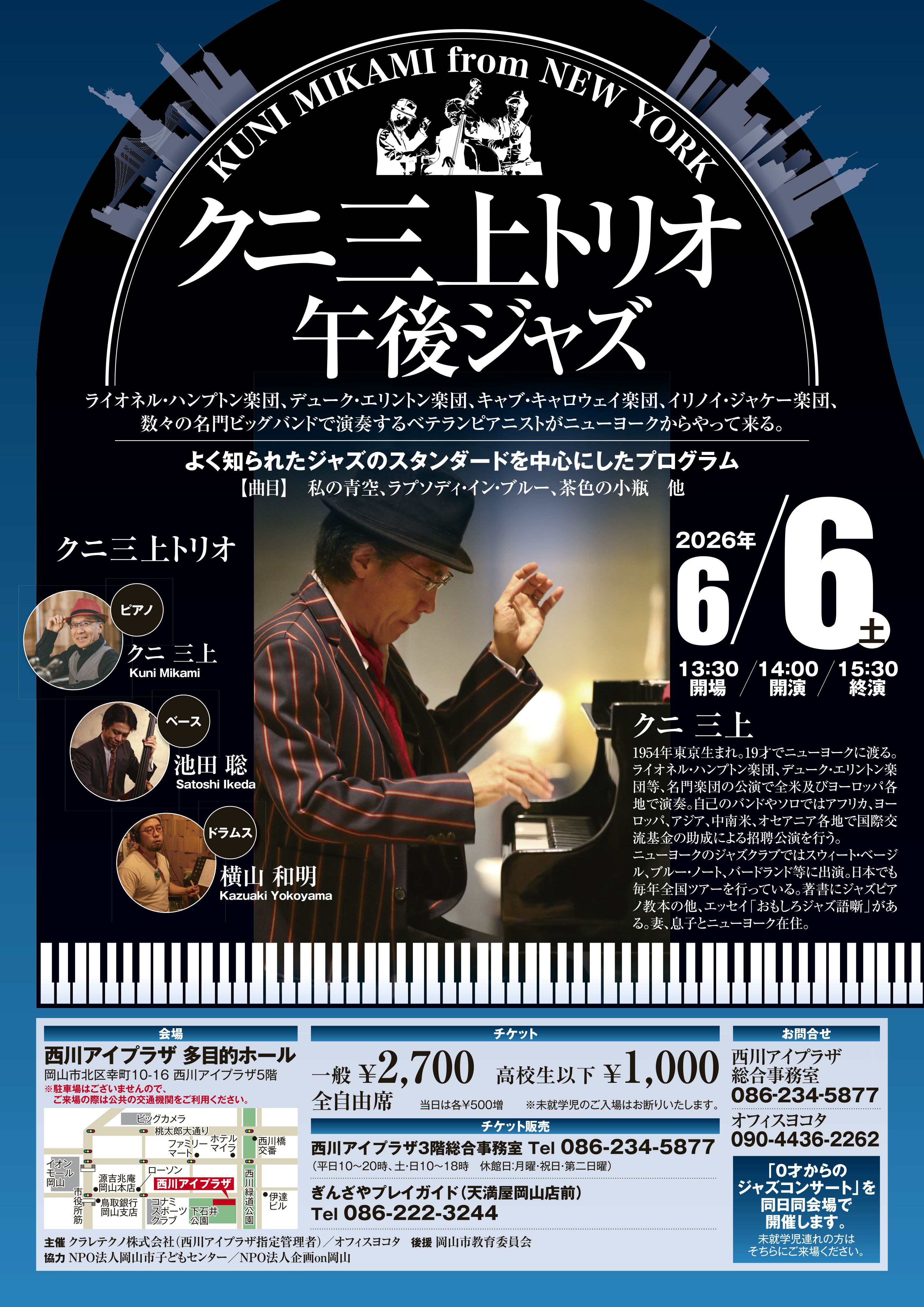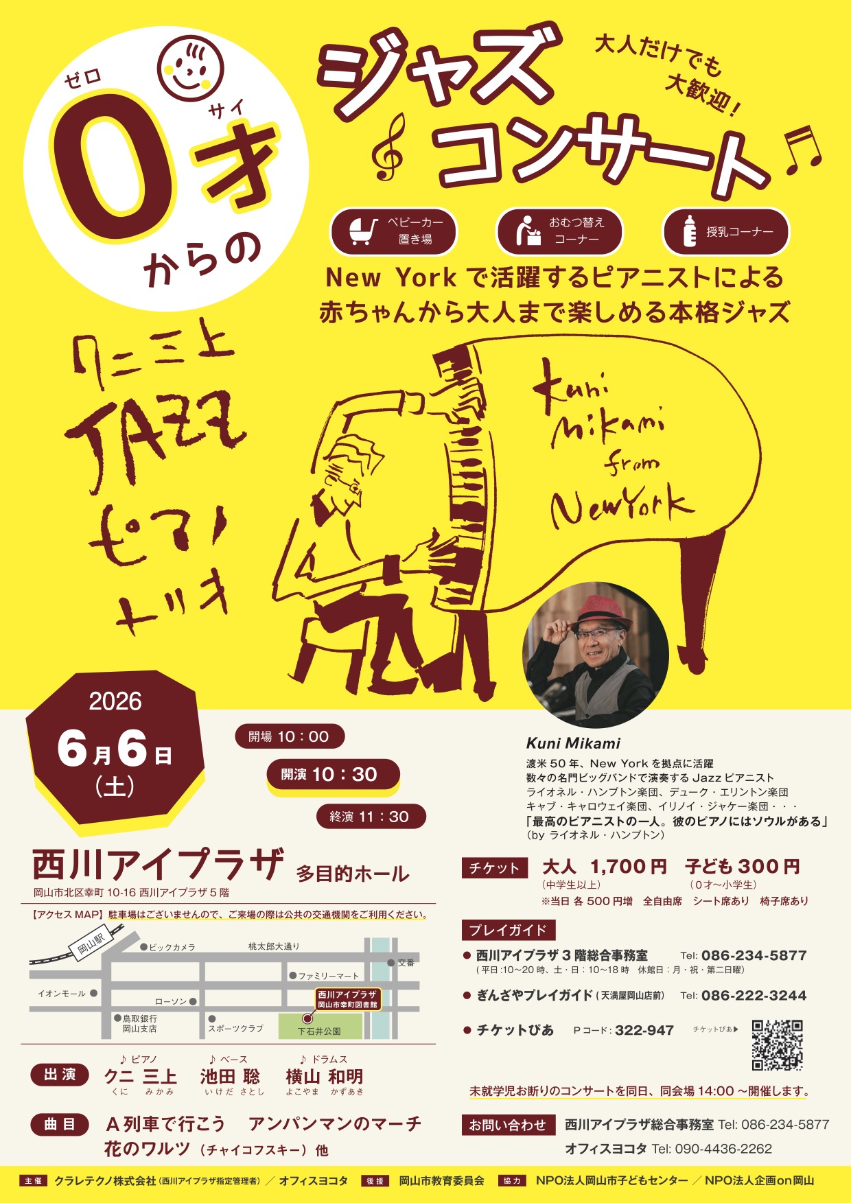 ※チケットの当日券は、0才からのジャズコンサートが300円増、クニ三上JAZZコンサートが500円増です。